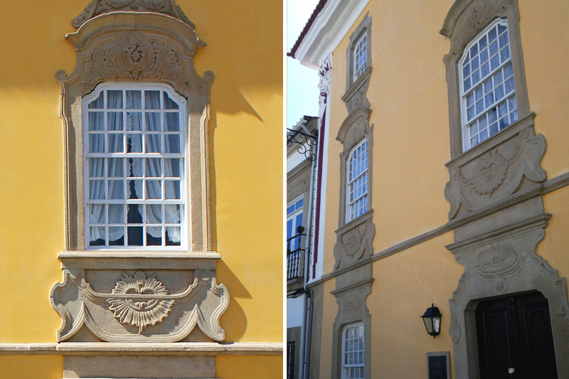 duas janelas cada, todas de guilhotina. As janelas sĂŁo enquadradas por molduras